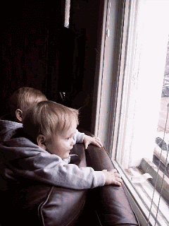 This Monday, River and Terran went to Grandma's. A firetruck rolled up to the building just across the street with lights blaring and sirens wailing. The boys' chair gave them a perfect vantage point...